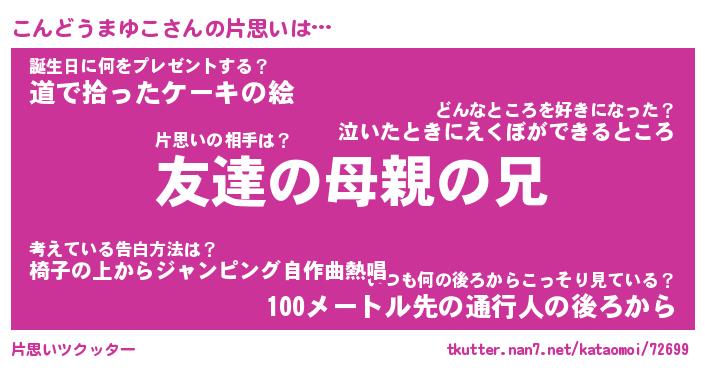 | 恥ずかしいあだ名 | 『プリティーこんどうまゆこ』『こんちん』 |