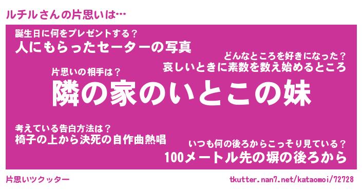 | 2回繰り返すあだ名 | 『ルチルチ』『ルルチチ』『うずうず』 |