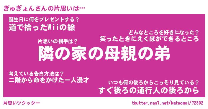 | 胡散臭い通販商品みたいなあだ名 | 『必ず成功するブレスレット…その名も「ぎゅぎょん」』 |