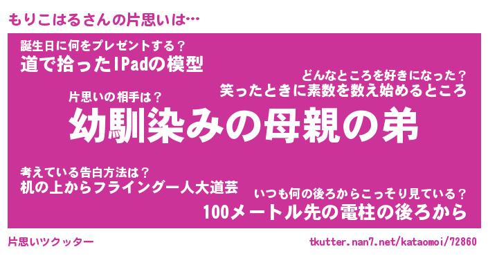 | ヒーロー風カッコイイあだ名 | 『スーパーモリコハル』『魔戒騎士モリ』 |