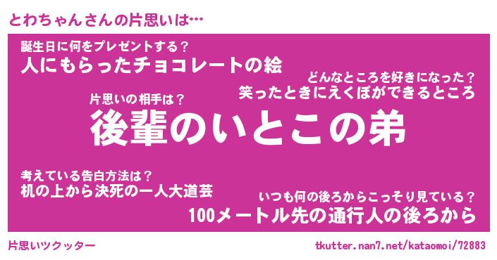 | ヘコむあだ名 | 『とわもー』『酢こんぶ』『とわを』 |