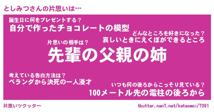 | ファンタジー風あだ名 | 『トシフェル』『エターナルトシミツー』 |