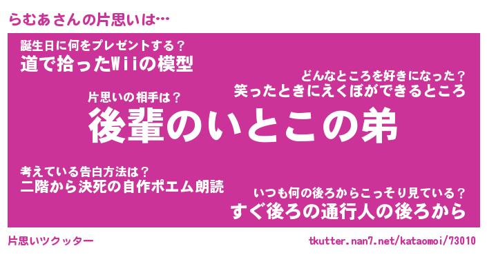 | ヘコむあだ名 | 『らむもー』『豆乳』『らむっ子』 |
