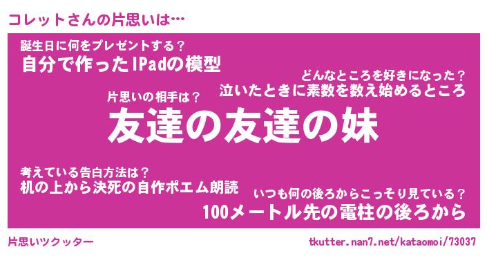 | 意味不明あだ名 | 『ペロリンコレット』『永久保存コレット』 |