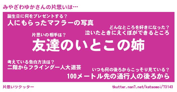 | 恥ずかしいあだ名 | 『プリティーみやざわゆか』『みやっちょ』 |
