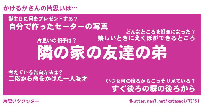 | ヘコむあだ名 | 『かけっふぃ~』『つくし』 |