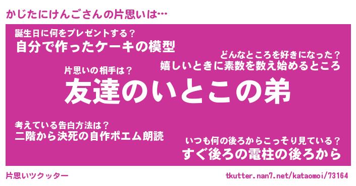 | 女子向けラノベタイトル風あだ名 | 『誰かこのかじたにけんごを説明してください! ~契約から始まるウェディング~』 |