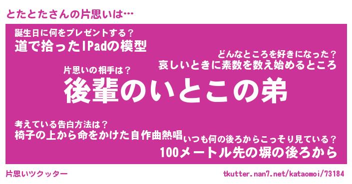 | ヘコむあだ名 | 『とたにゅー』『豆乳』『とたっ子』 |