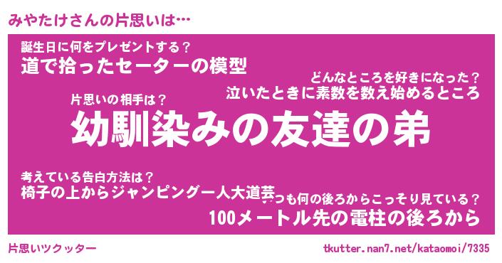 | 男性向けラノベタイトル風あだ名 | 『みやたけの憂鬱』 |
