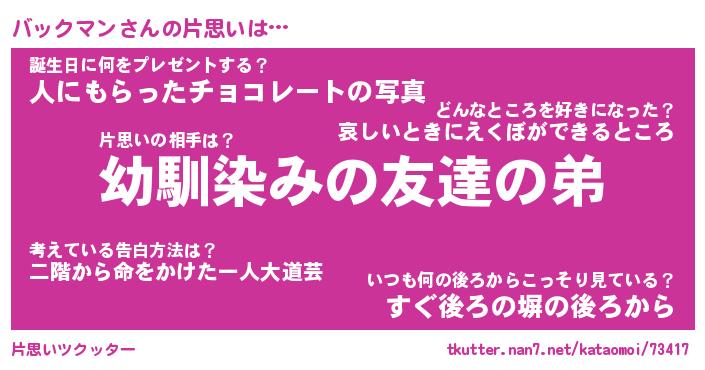 | 男性向けラノベタイトル風あだ名 | 『バックマンの憂鬱』 |