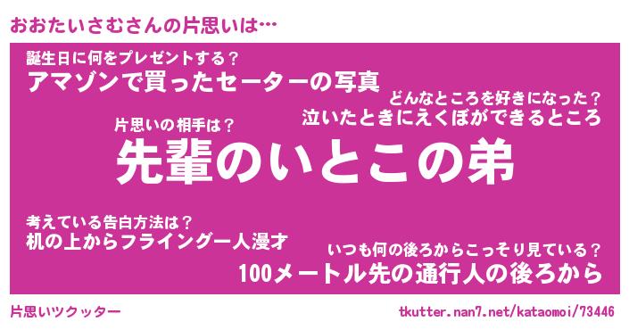 | 男性向けラノベタイトル風あだ名 | 『オオタイサムアートオンライン』 |