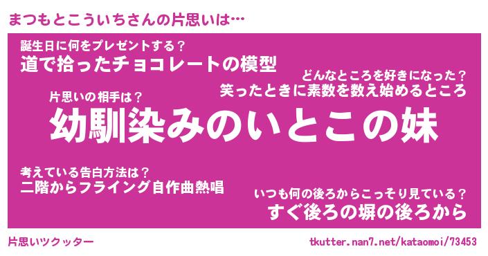 | 男性向けラノベタイトル風あだ名 | 『まつもとこういちの憂鬱』 |