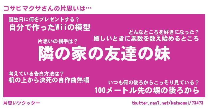| 女子向けラノベタイトル風あだ名 | 『(仮)コサヒマクサのやんごとなき事情』 |