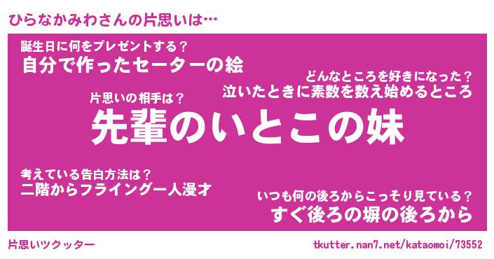 | 意味不明あだ名 | 『ペロリンひらなかみわ』 |