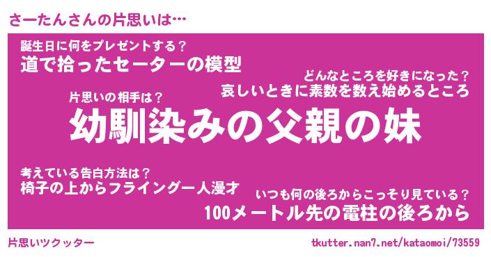 | 男性向けラノベタイトル風あだ名 | 『さーたんの憂鬱』 |