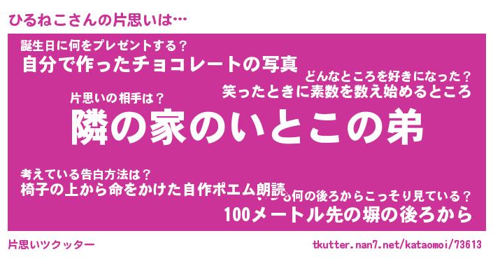 | ヘコむあだ名 | 『ひるもー』『つくし』『ひるお』 |