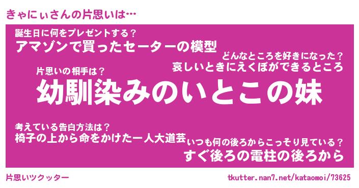 | 男性向けラノベタイトル風あだ名 | 『きゃにぃの憂鬱』 |