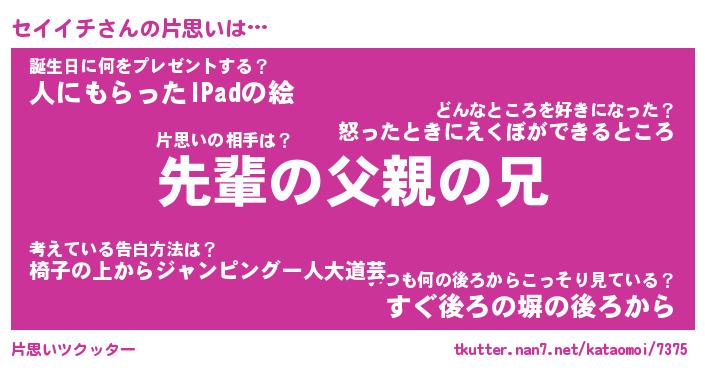| 胡散臭い通販商品みたいなあだ名 | 『モテモテ間違いなし水晶球…その名も「セイイチ」』 |