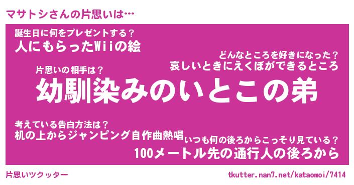 | 意味不明あだ名 | 『ペロリンマサトシ』『永久保存マサトシ』 |