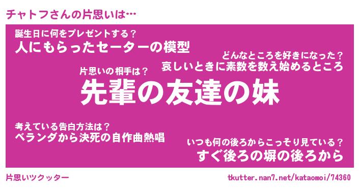 | 胡散臭い通販商品みたいなあだ名 | 『モテモテ間違いなし霊験あらたかなお札…その名も「チャトフ」』 |