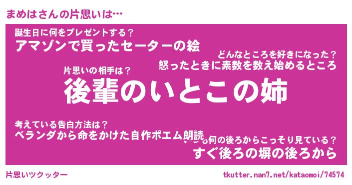| 意味不明あだ名 | 『ペロリンまめは』『まめはフォーエバー』 |