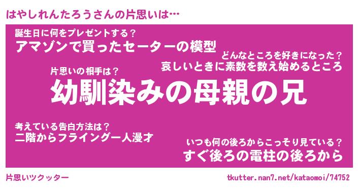| 男性向けラノベタイトル風あだ名 | 『はやしれんたろうの憂鬱』 |