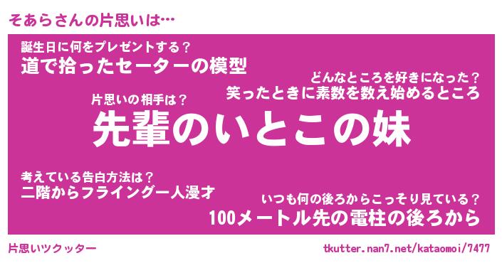 | 胡散臭い通販商品みたいなあだ名 | 『モテモテ間違いなし水晶球…その名も「そあら」』 |