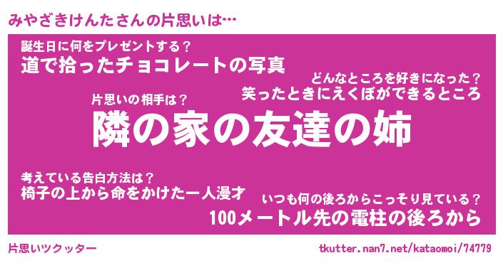 | 肩書あだ名 | 『みやざきけんた御曹司』 |