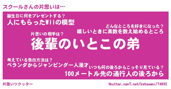 | ツイッター | スクールさんのツイッターID『namakemono_idle』 |