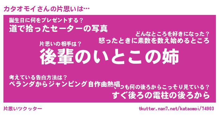 | 胡散臭い通販商品みたいなあだ名 | 『億万長者になれる水晶球…その名も「カタオモイ」』 |