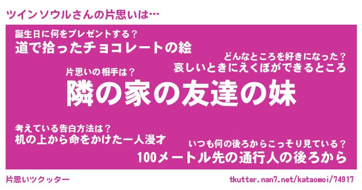| ヒーロー風カッコイイあだ名 | 『スーパーツインソウル』『炎刃騎士ツイ』 |