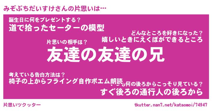 | 欧米人風あだ名 | 『マイケルみぞぶちだいすけ』 |