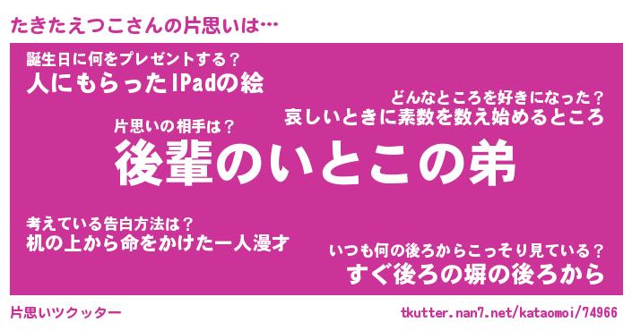| ツイッター | たきたえつこさんのツイッターID『namakemono_kun』 |