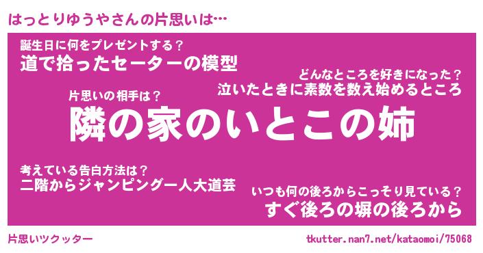 | 胡散臭い通販商品みたいなあだ名 | 『必ず成功する霊験あらたかなお札…その名も「はっとりゆうや」』 |