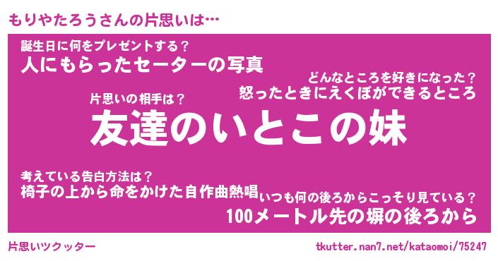 | 胡散臭い通販商品みたいなあだ名 | 『億万長者になれる霊験あらたかなお札…その名も「もりやたろう」』 |