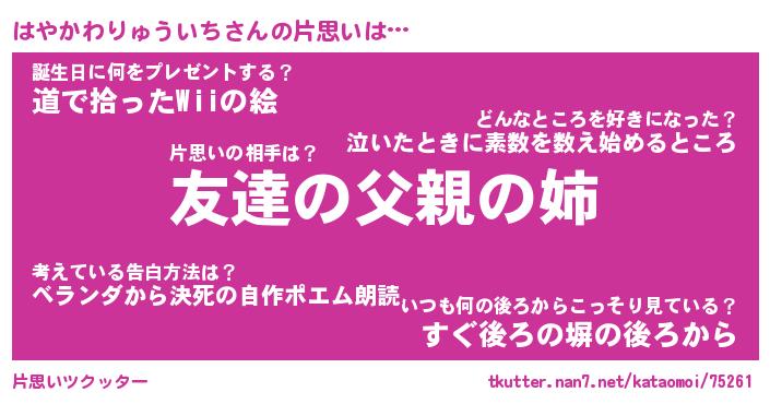 | 胡散臭い通販商品みたいなあだ名 | 『億万長者になれる水晶球…その名も「はやかわりゅういち」』 |