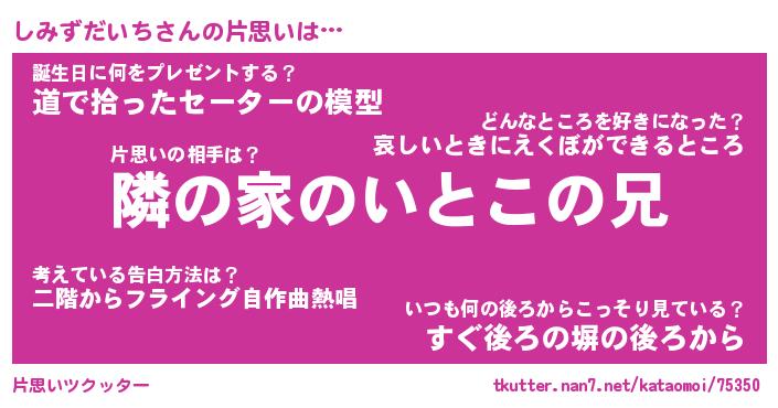 | 恥ずかしいあだ名 | 『プリティーしみずだいち』『しみっちょ』 |