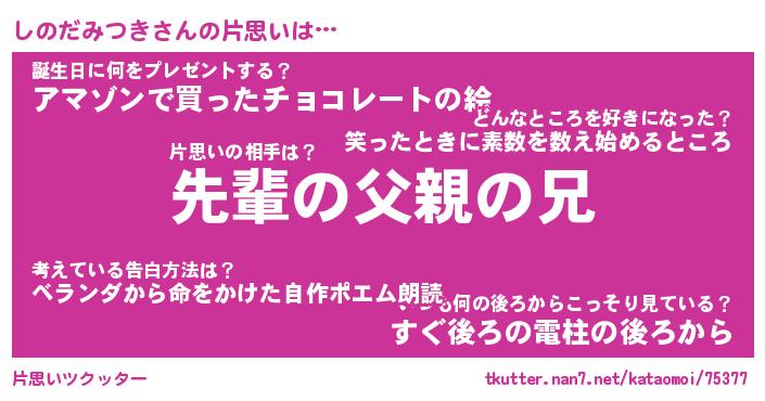 | 胡散臭い通販商品みたいなあだ名 | 『モテモテ間違いなし水晶球…その名も「しのだみつき」』 |
