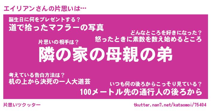 | 男性向けラノベタイトル風あだ名 | 『エイリアンの憂鬱』 |