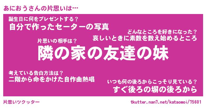 | ヘコむあだ名 | 『あにっふぃ~』『つくし』 |