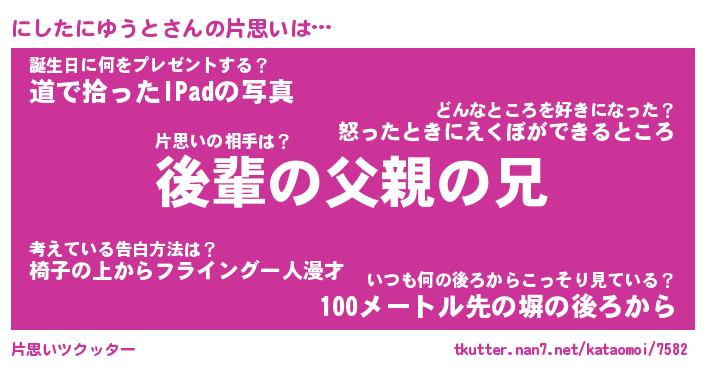 | 胡散臭い通販商品みたいなあだ名 | 『億万長者になれる水晶球…その名も「にしたにゆうと」』 |
