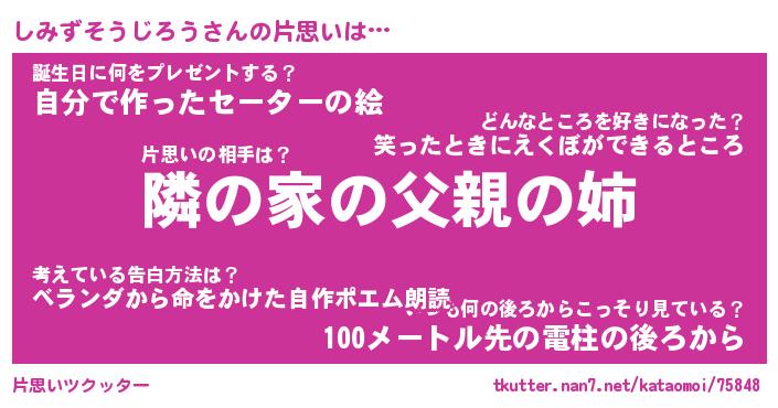 | 胡散臭い通販商品みたいなあだ名 | 『モテモテ間違いなし水晶球…その名も「しみずそうじろう」』 |