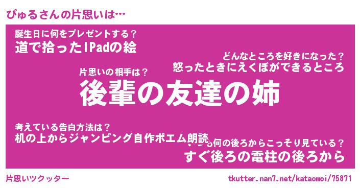 | ヘコむあだ名 | 『ぴゅっふぃ~』『つくし』『ぴゅを』 |