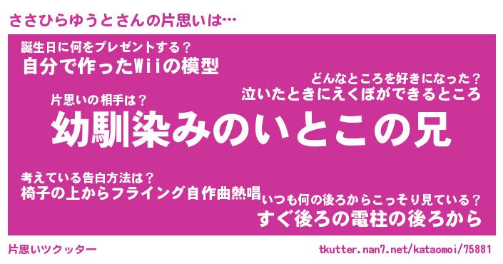 | 恥ずかしいあだ名 | 『プリティーささひらゆうと』『ささちん』 |