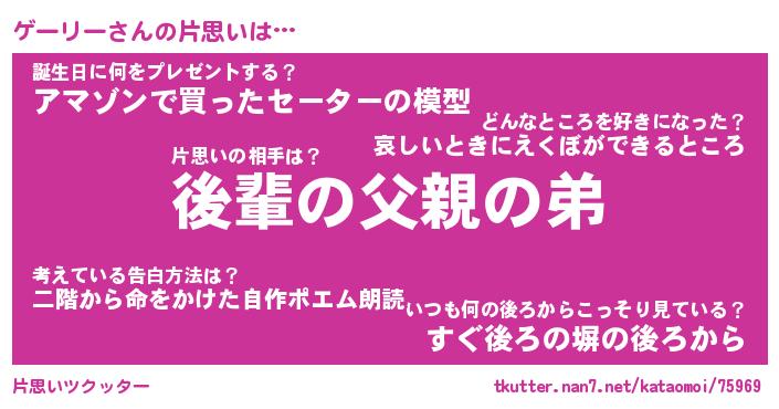 | ヘコむあだ名 | 『ゲーにゅー』『酢こんぶ』『ゲーを』 |