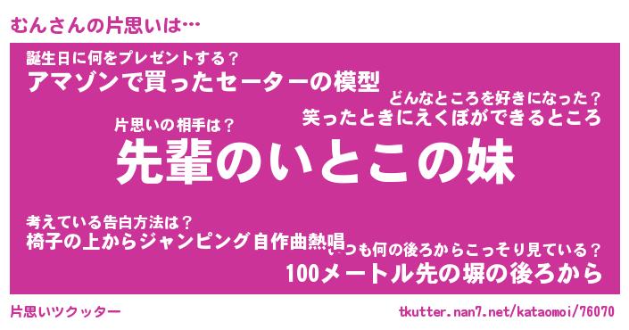 | ヘコむあだ名 | 『むんもー』『なまこ酢』『むんっぺ』 |