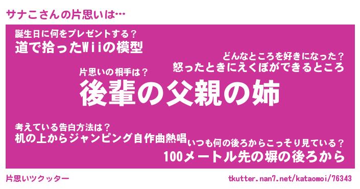 | ヘコむあだ名 | 『サナにゅー』『豆乳』『サナっぺ』 |