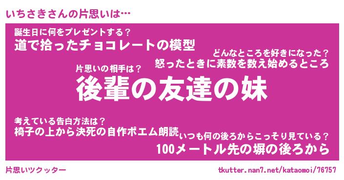 | ファンタジー風あだ名 | 『イチフェル』『エターナルイチサキー』 |