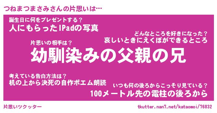 | 恥ずかしいあだ名 | 『プリティーつねまつまさみ』『つねちん』 |