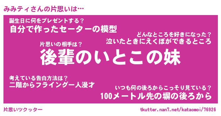 | ヘコむあだ名 | 『みみもー』『つくし』『みみ太郎』 |